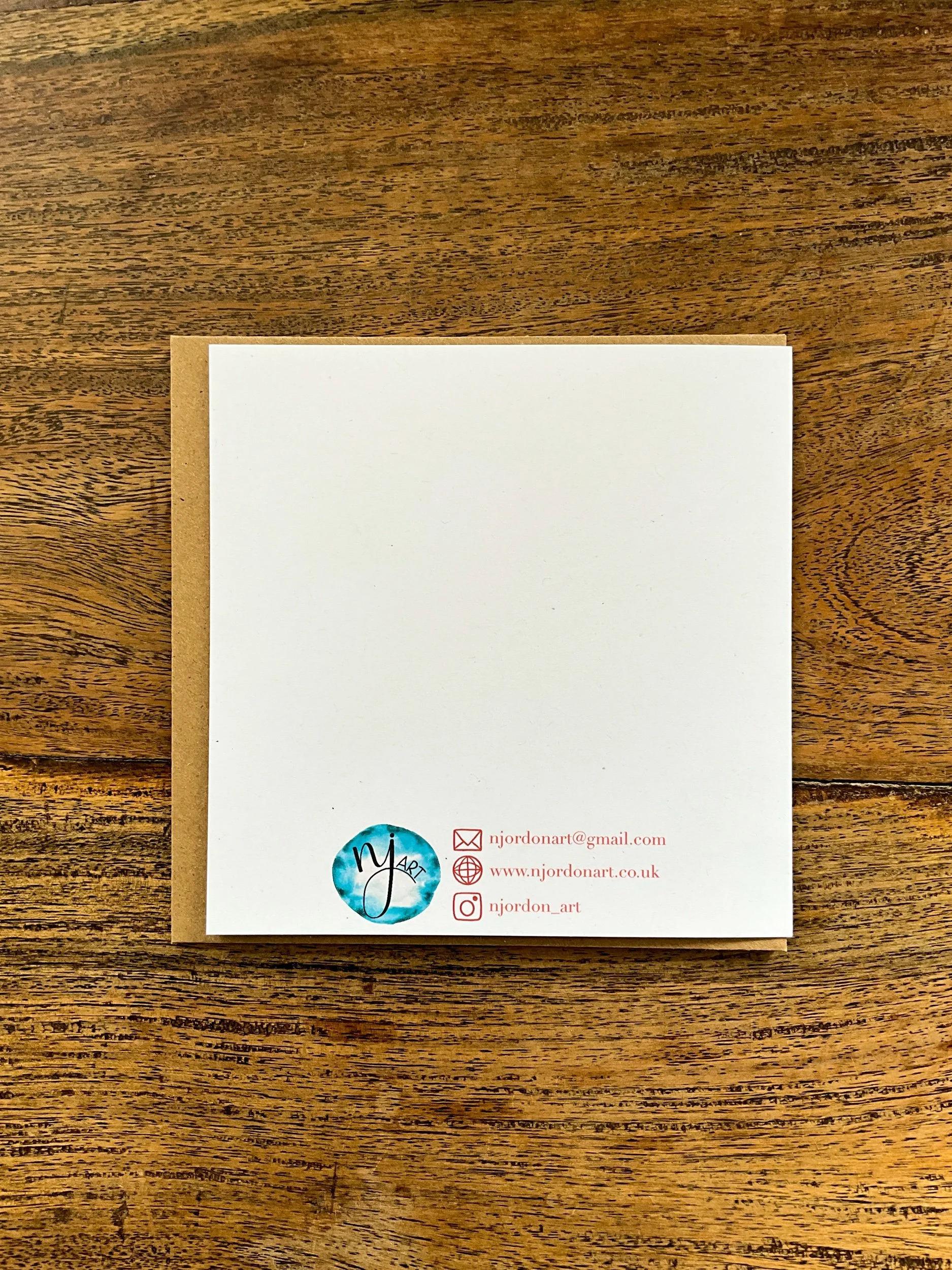 The cards measure 148 x 148mm when folded, and each comes with a Kraft brown 100% recycled envelope. They are blank inside for you to add your own personal message. Your order will be packaged and posted plastic-free.